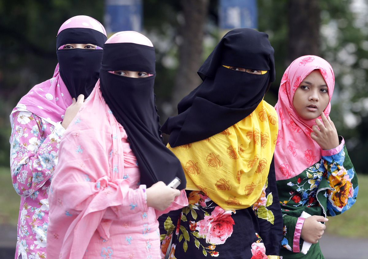 Filipino Muslims walk back to their homes after attending a prayer at the Blue Mosque