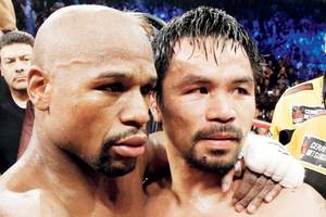 At the end of this "fight" neither Pacman or Mayweather had a single cut on their faces, a swollen lip or eyes, or any marks whatsoever. I remember seeing a video of a post fight press conference after the Tommy Hearns v. Sugar Ray Leonard fight. Neither of them could see as their eyes and faces were so beaten, bruised, and swollen.
