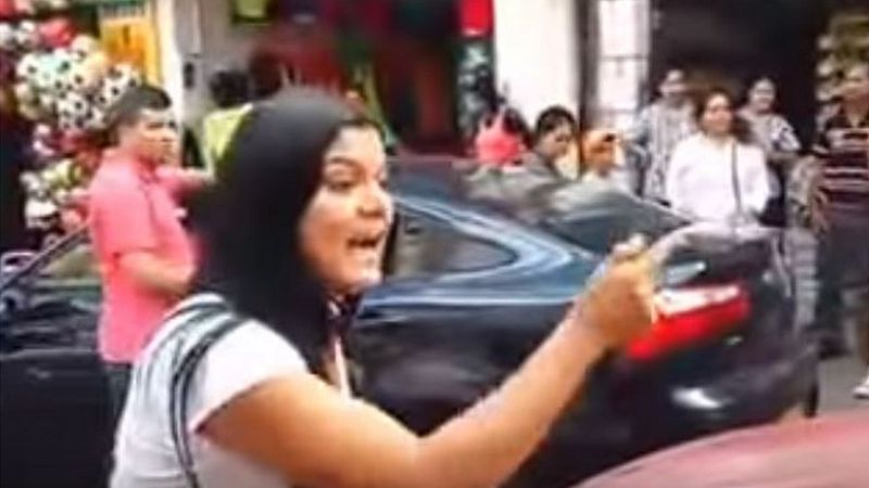 (warning: contains swearing in Spanish) shows her thumping the bonnet and shouting at